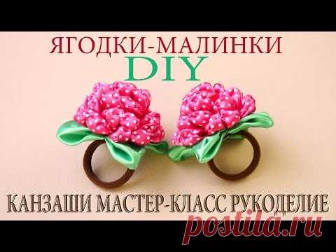 Ягодка-Малинка. Канзаши МК. Резинка для волос / Berry-Raspberry Kanzashi MK. Elastic band for hair.