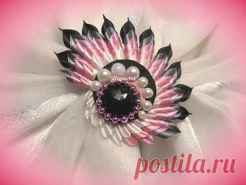 Как сделать брошь из лент своими руками, "Фантазия" канзаши, МК.