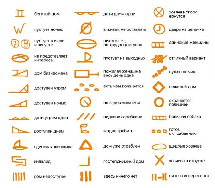 Пытаясь обмануть стражей порядка и законопослушное общество, преступники с каждым годом совершенствуются и придумывают всё новые уловки. Так, полиция Чили недавно обнародовала систему условных обозначений, которые осведомители воровского мира рисовали на дверях домов мирных граждан.В зависимости от того, легко ли ограбить дом, чем там ...