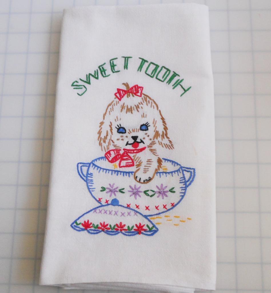 Винтажная Сладкоежка щенка в сахарница вышитые муки мешок кухонные полотенце | eBay