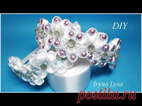 Как сделать детский ободок «Зигзаг с бусинами», DIY Headband, Kanzashi, Tutorial #50 - YouTube