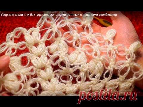 Узор для шали или бактуса соломоновыми петлями с пышными столбиками
