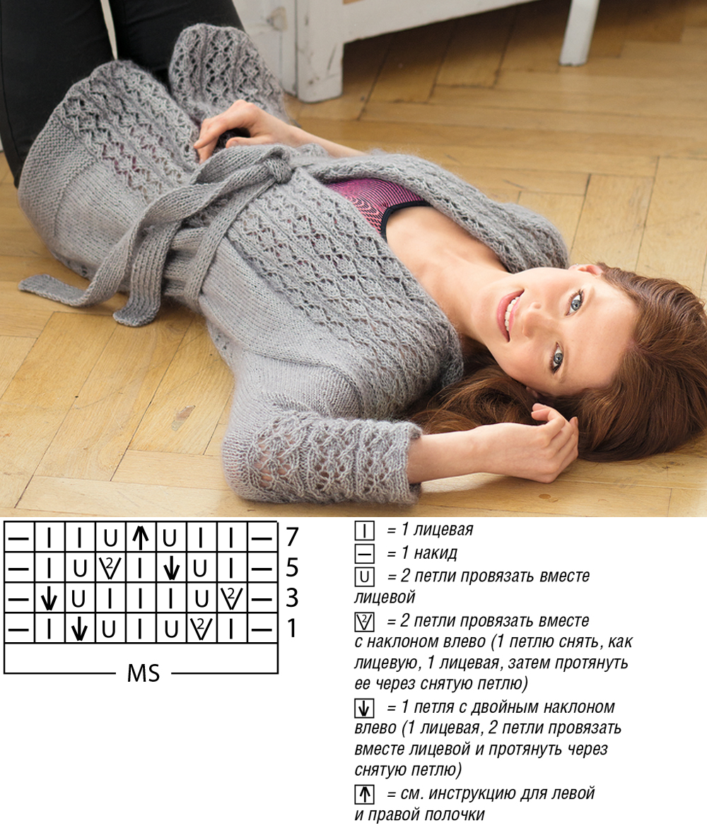 Кардиган с ажурными планками и поясом