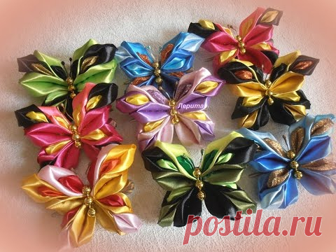 Объёмная 3D бабочка канзаши из атласных лент, мастер класс Лерита