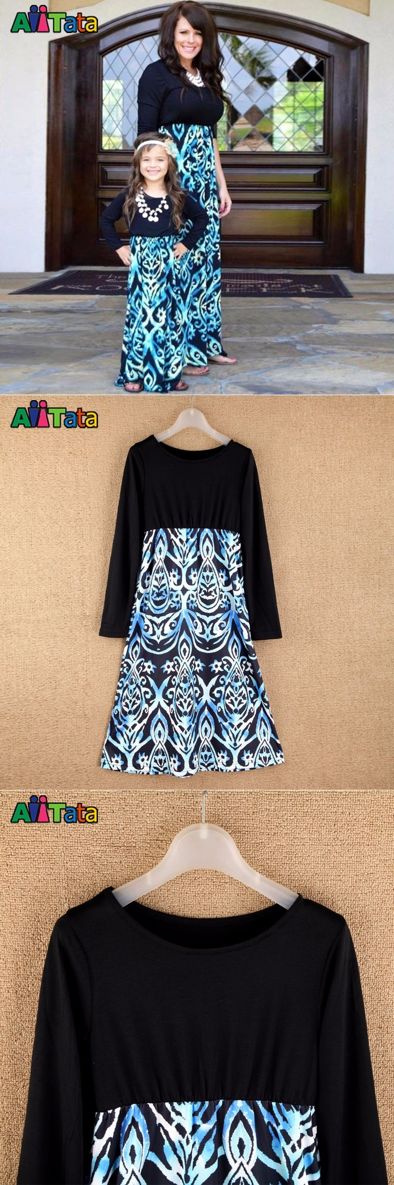 Черно-бирюзовое на длинный рукав платье-макси для мамы и дочки - Детские платья нарядные и каждодневные / СЮРПРАЙЗ