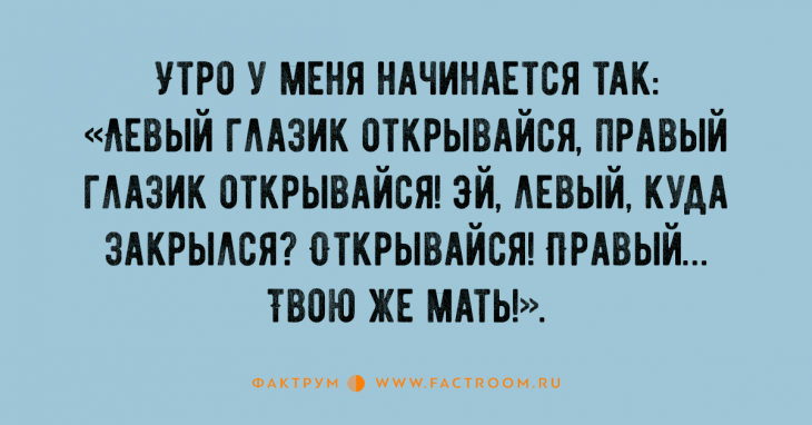 Подборка анекдотов | Чёрт побери — И все-таки лучшие внедорожники делают именно в России! — Ага, только почему-то на гусеничном ходу и с пушкой.😃 😃 😃В деревне. — Иван, а что это у вас пшеница не растет? — Дык не сажаем ведь! — А что не сажаете? — Дык не растет!😃 😃 😃 😃 😃 😃Юноша ушел добровольцем на пенсию, приписав себе недостающие 50 лет.😃 😃 😃— В холодильнике ничего не трогай. Это на Новый год. — Так вроде там ничего и нет. — Там надежды на светлое будущее. И ш...