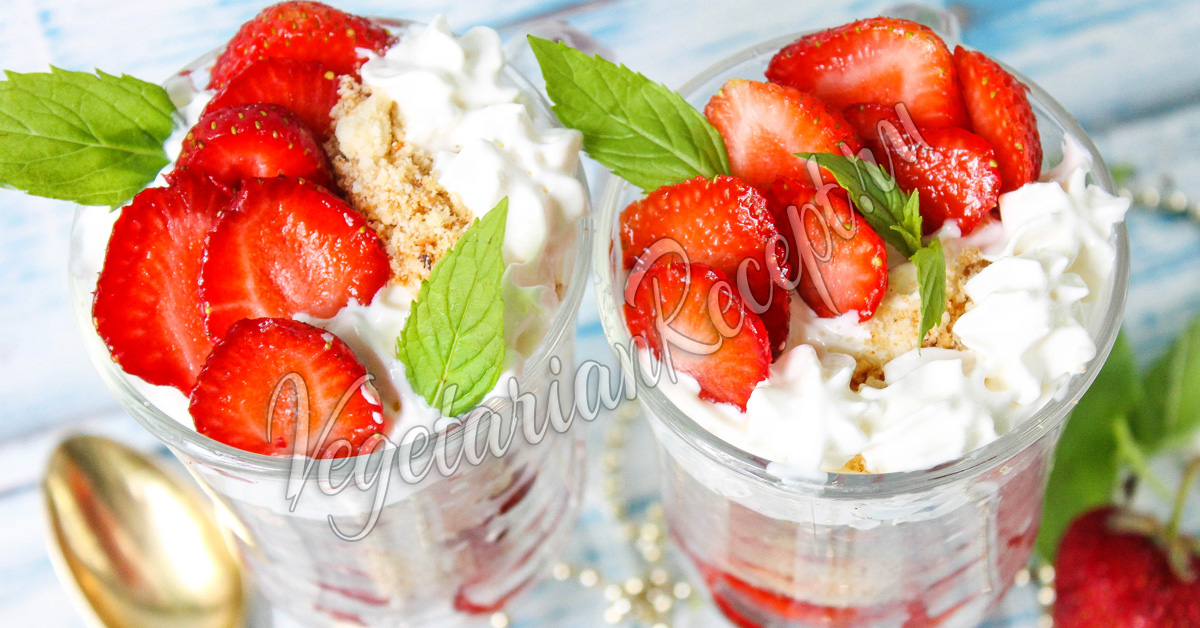 Десерт с клубникой, печеньем и сливками Очень быстро, эффектно и вкусно! Когда нет времени на торт, этот десерт выручает.
