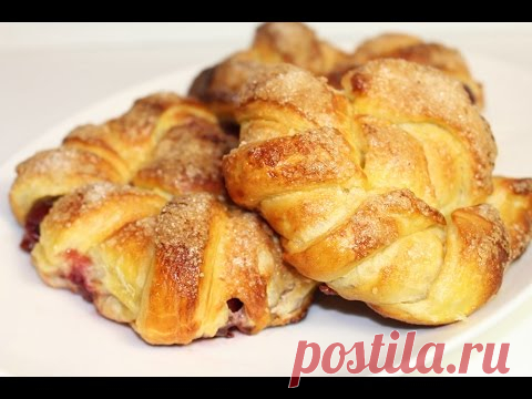 Слоеные булочки с вишней (как красиво завернуть)