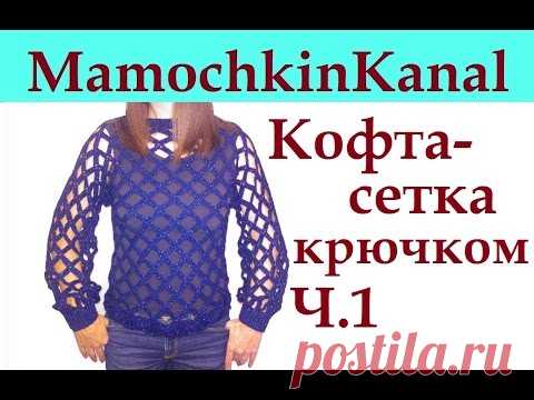 Вязание крючком кофты в дырочку Кофта-Сетка Ч.1 Crochet mesh pattern sweater