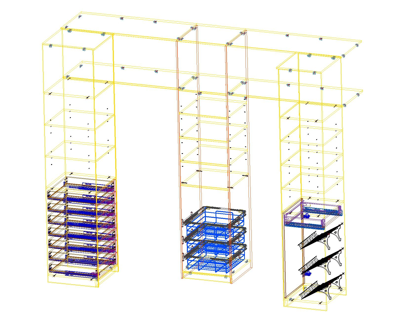 общий вид  гардеробной комнаты, каркасный вид bCAD