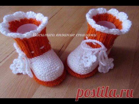 Пинетки спицами цветочки //Василиса