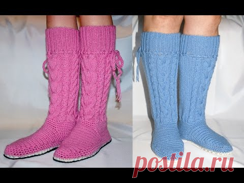 Видео курс "Домашние сапожки с косами". Вязание спицами и крючком / knitting