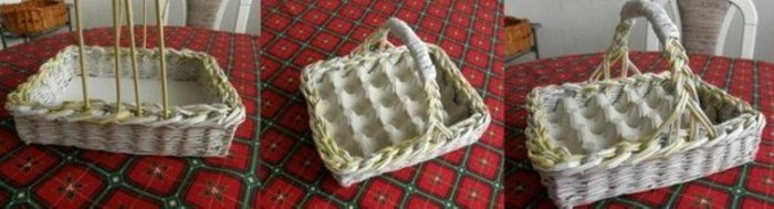Корзинка-лоток для пасхальных яиц из газетных трубочек