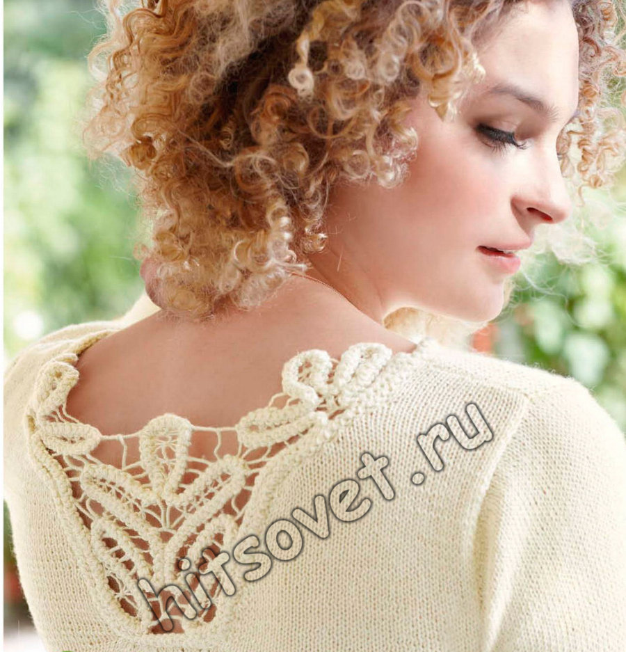 Пуловер с кружевной вставкой - Хитсовет Пуловер с кружевной вставкой. Модная модель для женщин белого пуловера с кружевной вставкой на спине со схемой и бесплатным описанием вязания. Вам потребуется: 300 (400, 500) грамм белой пряжи