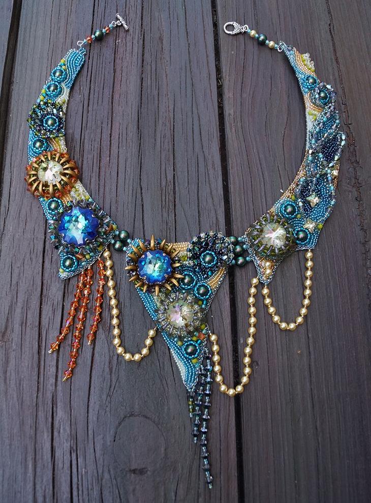 Вышитое колье с кристаллами Swarovski «Бездна» Приготовьтесь погрузиться в бездну вдохновения: сегодня вы увидите процесс создания необычного украшения от эскиза до готового изделия, узнаете секреты гармоничной композиции и работы с бисером и крис...