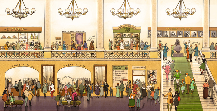 Иллюстрация В театре. Фойе.. Просмотреть иллюстрацию В театре. Фойе. из сообщества русскоязычных художников автора Бауман Екатерина в стилях: Графика, нарисованная техниками: Смешанная техника.