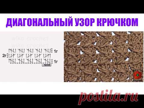 Узор крючком с вытянутыми диагональными столбиками Вяжем по схемам