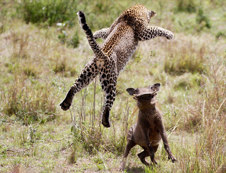 Виртуозы охоты: летающий леопард | Чёрт побери Большие кошки — самые виртуозные охотники. Фотограф Питер Томпсон снял в Национальном заповеднике Масаи Мара невероятные кадры охоты летающего леопарда на бородавочника. Выслеживает добычу. Бородавочник еще не видит леопарда, и не знает, то жить ему осталось несколько секунд. Началось. Кстати, это самка леопарда, причем беременная. Бородавочник напоминает кабана с несколько приплюснутой, очень крупной головой. Взрослые сам...