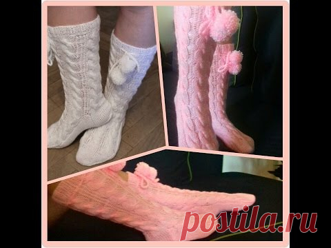 Гольфы с косами и понпонами спицами. Часть 2.