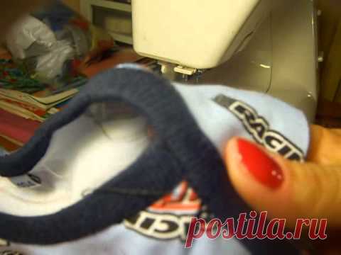 Обработка горловины футболки трикотажной бейкой Обработка горловины футболки трикотажной бейкой, пошив футболки