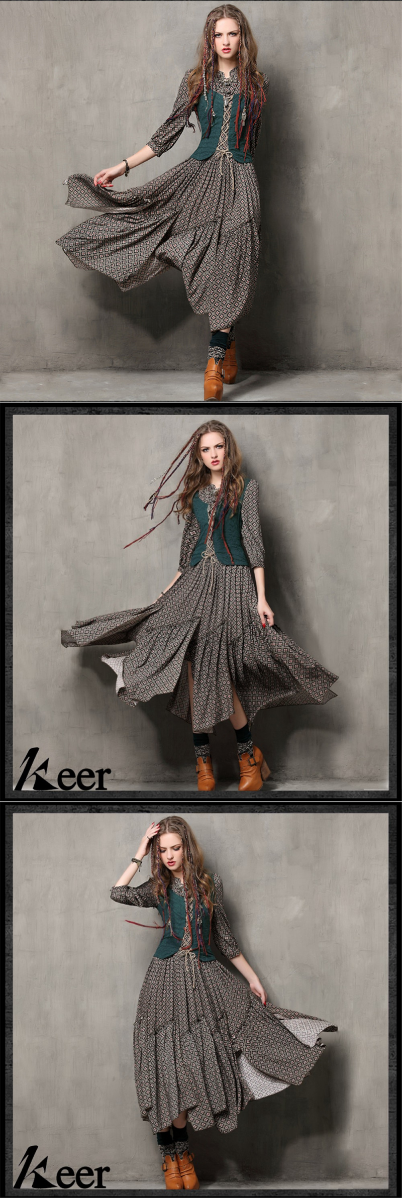 Осень Туника Vestidos Старинные Мандарин Воротник Хлопок Платье Половина Рукава A Line Три Четверти Рукава Макси Женщины Вышивка Платья купить на AliExpress