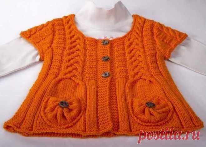 Кофточка на девочку Кофточка на девочку Размеры: 4 года - 6 лет - 8 лет - 10 лет - 12 лет Нитки MAGIC (50 г. / 80 м.) (50% акрил, 50% шерсть) цвет BUVARD 5 - 6 - 7 - 8 - 9 мотков Спицы № 5,5. 1 доп. спица. 5 розовых пуговиц диам.18 мм. Вязки Платочная вязка, спицы № 5,5. Лиц. гладь и изн. гладь, спицы № 5,5. Фант. узор, спицы № 5,5. На 4 п. Вязать 4 р. платочной вязкой и 2 р. лиц. гладью. Повторять эти 6 р. Коса, спицы № 5,5. На 12 п. 1-ый р. (лиц. сторона работы): 4 п....