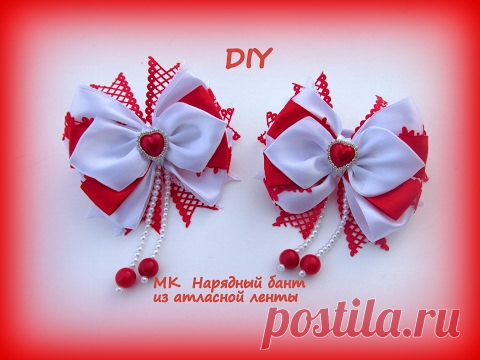 Нарядный бант из атласной ленты/МК/HandMade/DIY