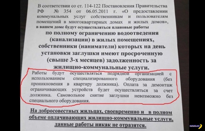 Перекрытие канализации неплательщикам | Чёрт побери Блеф? Ведь достаточно не пускать коммунальщиков внутрь квартиры и они ничего не смогут сделать! Так думают многие, но это не так. Коммунальщики действительно могут перекрыть весь водосток из квартиры, оставив при этом жильцов не только без туалета, но и без возможности пользоваться водой. Под катом небольшой рассказ о современных технологиях, которые позволяют делать это с определенной квартирой без доступа в неё, да так,...