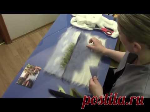 ЖИВОПИСЬ ШЕРСТЬЮ " БЕРЕГ" / FELTING of PICTURE / HOW TO MAKE A PICTURE of WOOL