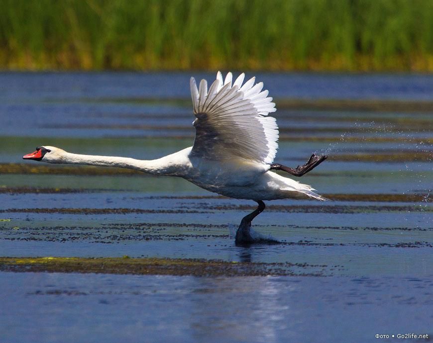 Лебедь-шипун, масса которого может достигать 16-ти килограммов, – самая крупная птица, способная разгоняться до взлета по гладкой водной поверхности в авандельте реки Волга.