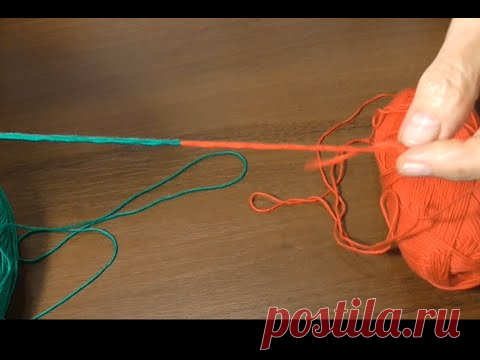 Как соединить две нитки без узла при вязании.