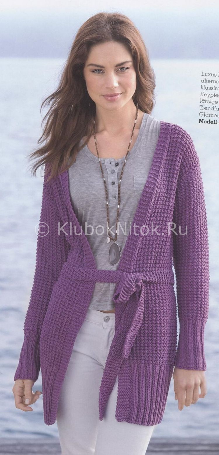 Удлиненный фиолетовый кардиган | Вязание для женщин | Вязание спицами и крючком. Схемы вязания.