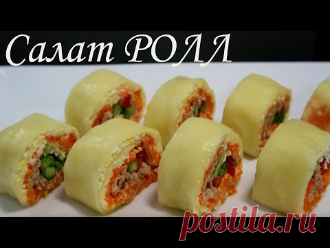 Салат РОЛЛ МИМОЗА с сыром и тунцом - Салат СУШИ необычная подача блюд - Salad roll MIMOSA