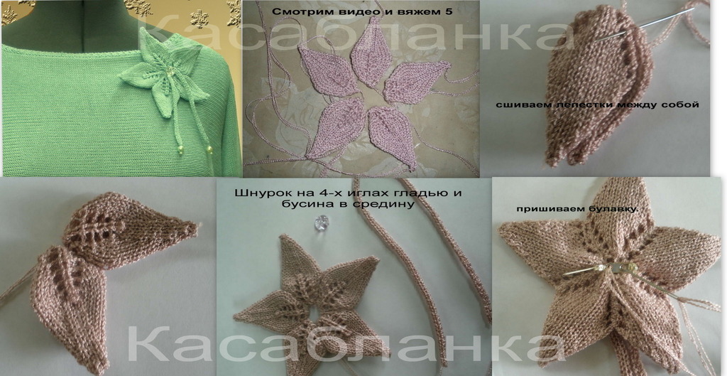 Вязанная БРОШЬ-ЦВЕТОК. Видео МК от Касабланки.