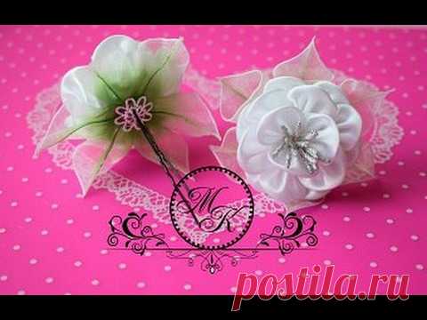 Как сделать шпильку с цветочком из лент.Шпилька канзаши.МК круглый лепесток.