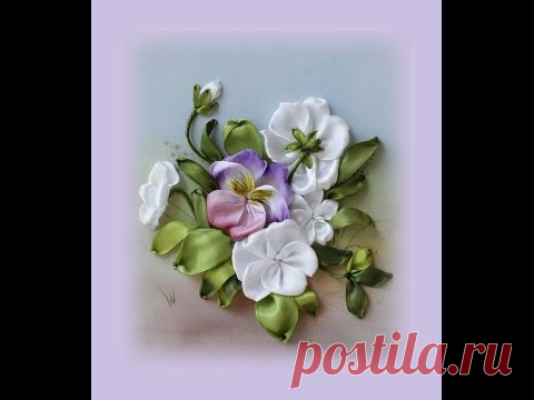 Вышивка лентами миниатюры анютины глазки часть 2 Вышиваем цветок в анфас