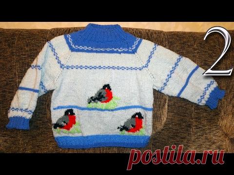 Пуловер (Свитер) для мальчика с рисунком Снегири вязание спицами Часть 2