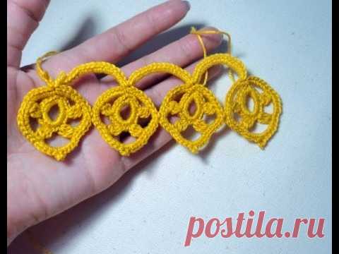 Тесьма вязанная крючком. Листочки колечки. Видео-урок.