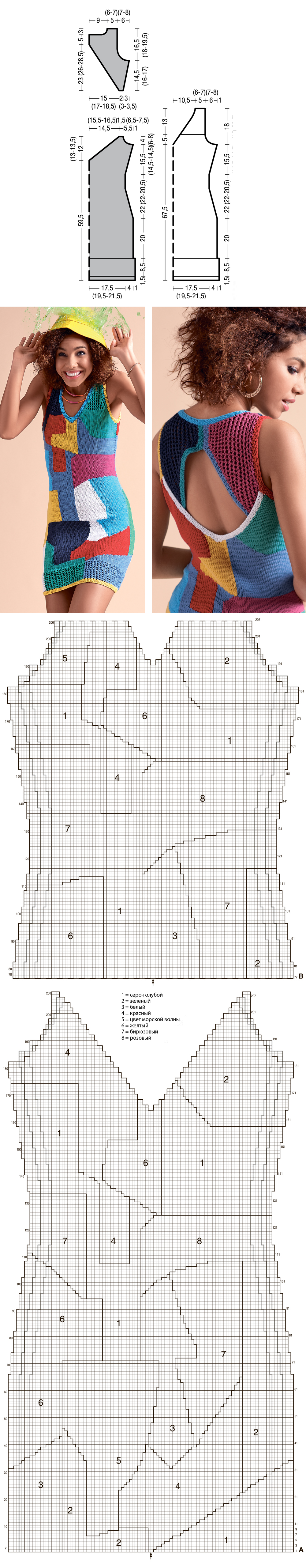 Мини-платье с вырезом на спинке и графическим узором - схема вязания спицами. Вяжем Платья на Verena.ru