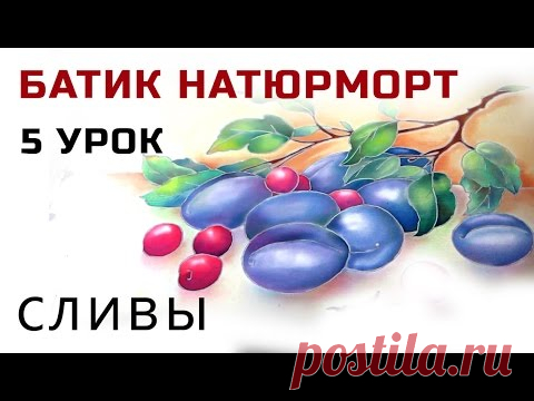 Роспись шелка Холодный батик мастер класс Натюрморт с вишнями сливами Как нарисовать объемные сливы