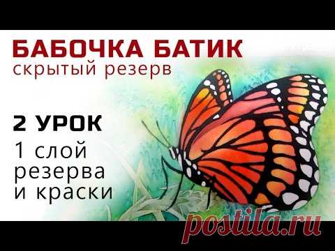Роспись шелка. Холодный батик мастер класс - техника скрытого резерва. 1 слой резерва и краски.
