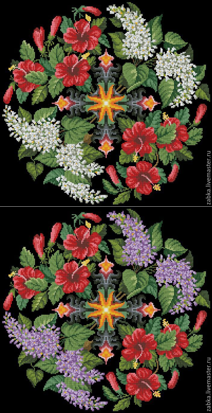 Купить Гибискус и сирень схема для вышивки - комбинированный, старая вышивка, схема для вышивки