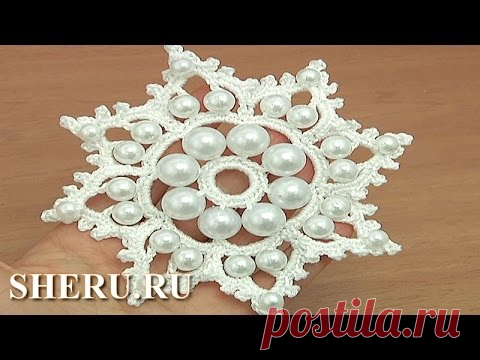 Easy to Crochet Snowflake With Bead Урок 19 Снежинка с бусинками