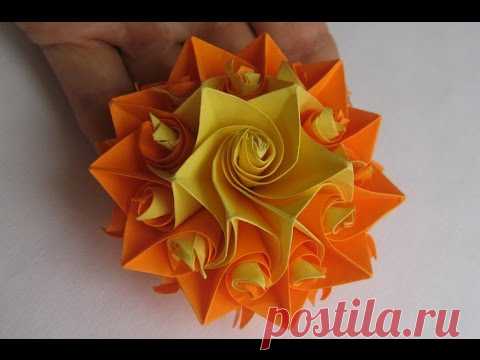 РОЗЫ из бумаги.Цветы из бумаги.Кусудама супершар | оригами Модуль.Подарки Поделки с детьми!