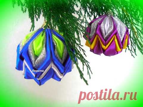 Новогодние игрушки на ёлку своими руками, шарики канзаши от Лериты.