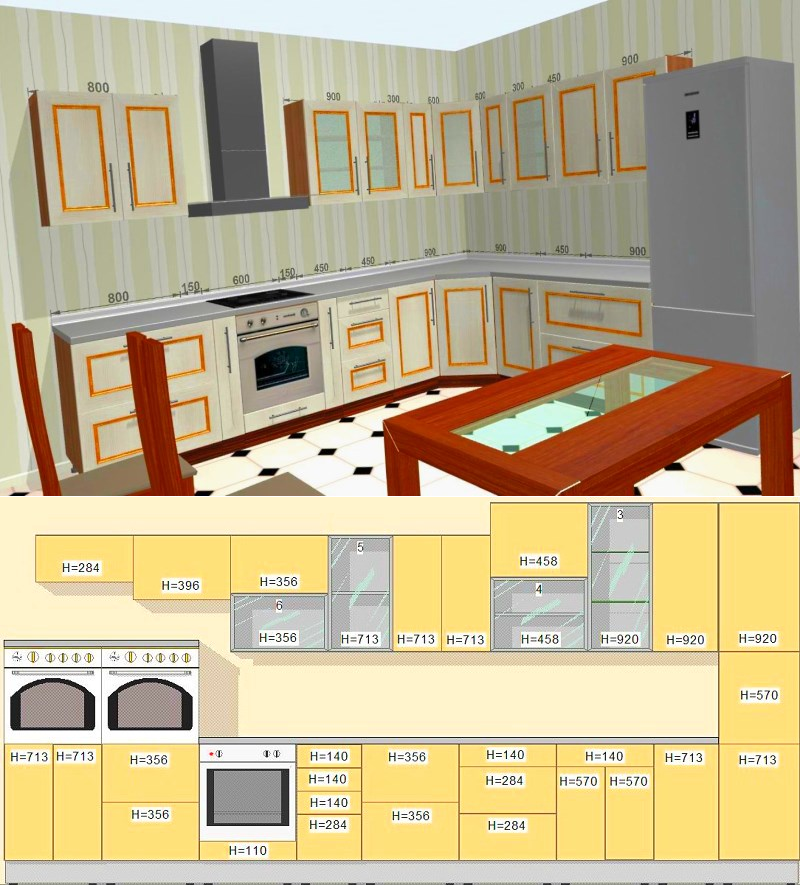 Размеры кухни: стандартные габариты кухонного гарнитура