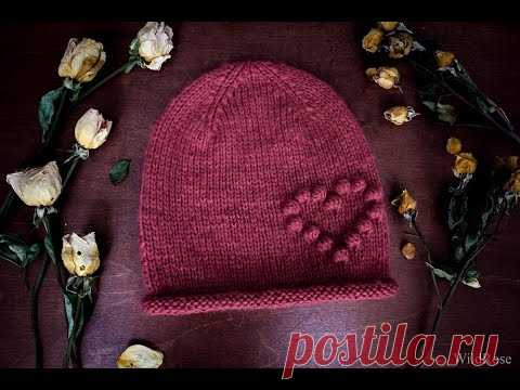 Вяжем шапку с сердечком ♥ Вяжем спицами ♥ Wild Rose ♥