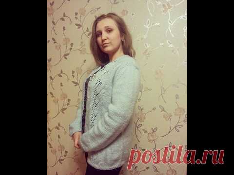 Вязаный ЖАКЕТ спицами, с ажурными планками из кос. 2017 г,.