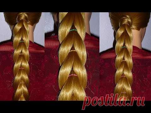 Простая Коса с помощью резинок.Причёска для средних, длинных волос.Плетение косичек для детей