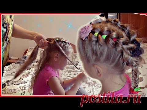ПЛЕТЕНИЕ КРУПНЫХ КОС ДЛЯ ДЕВОЧЕК НА РЕЗИНКАХ Как сделать❀Girls Hairstyles TUTORIAL Mom and daughter